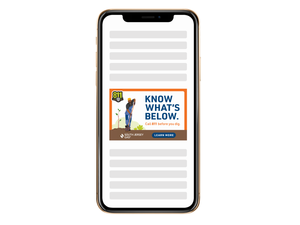 South Jersey Gas wanted to remind homeowners and contractors about one simple—but critical—step before starting any digging project: Call 811. With damages from unreported digging still occurring in several high-risk communities, South Jersey Gas partnered with Whale to develop a digital-first awareness campaign that made safety simple, visible, and actionable.